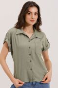 20187 Kısa Kol Oversize Örme Gömlek - Çağla