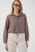 20276 Uzun Kol Çizgili Gömlek - Kahverengi