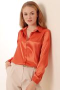 3964 Hafif Dökümlü Saten Gömlek - Turuncu