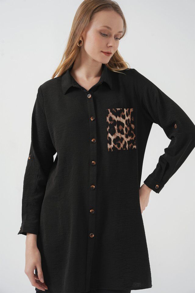 5851 Cep Detaylı Gömlek Tunik - Siyah
