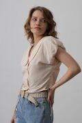Bebe Yaka Yanları Bağlamalı Bluz - Taş