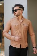 Erkek çift Cepli çıtçıt Düğmeli Uzun Kollu Gömlek