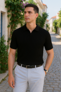 Erkek Kısa Kollu Yakalı çizgi Desenli Triko Bluz