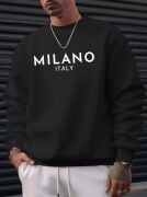 Erkek Uzun Kollu Bisiklet Yaka Milano Yazılı Iki Iplik Bluz