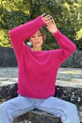 Fuşya Baklava Desenli Triko Kazak