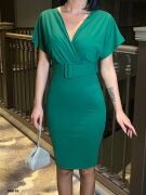 Kadın Dalgıç Krep V Yaka Ve Sırt Dekolte Detaylı Elbise
