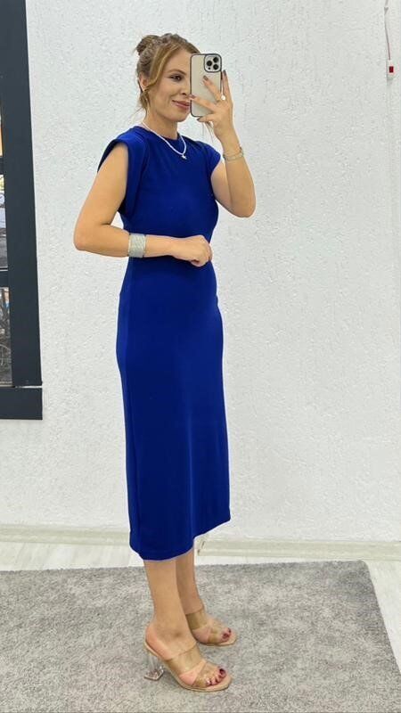 Kadın Full Likralı Pamuklu Ottoman Kumaş Yırtmaçlı T Kol Midi Elbise