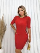 Kadın Kırmızı Kısa Kol Bel Detay Kaşkorse Elbise