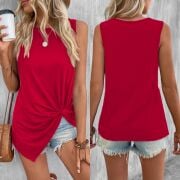 Kadın Kolsuz Asimetrik Kesim Bağlamalı Viskon Bluz