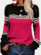 Kadın Uzun Kollu Bisiklet Yaka çok Renkli Triko Bluz