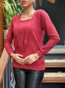Kadın Uzun Kollu Kruvaze Yaka Kol Ve Etek Ucu Manşet Detay Yumoş Bluz