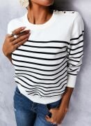 Kadın Uzun Kollu Omuzu Düğme Detay çizgili Triko Kazak