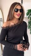 Kadın Uzun Kollu Tek Omuzu Açık Dantelli Burgu Bluz