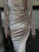 Kadın Uzun Kollu Yarım Balıkçı Yaka Büzgü Detay Kadife Kumaş Elbise