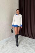 Mavi Yaka Ve Manşet Garnili Triko Kazak