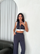 Osy Modal Yumuşak Dokulu Kumaş Tam Fermuarlı Crop Pantalon İkili Takım - Antrasit