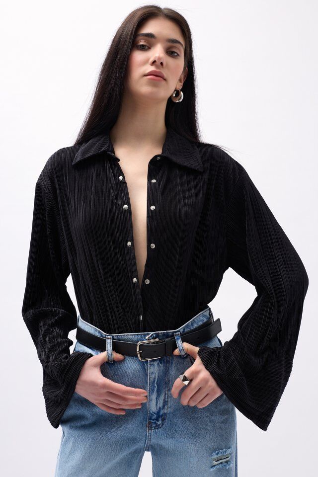 Oversize Dokulu Gömlek