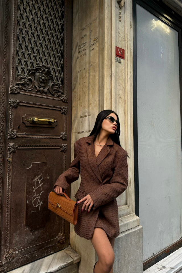 TEK DÜĞME CEKET ŞANEL KUMAŞ - Kahverengi