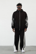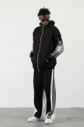 Üç İplik Baskılı Fermuarlı Kapşonlu Hırka - Siyah