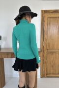 Yeşil Boğazlı Ve Örgülü Triko Kazak